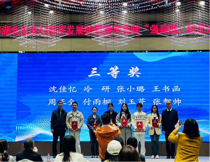 本网讯(通讯员 张智帅 董倩莉 曹孟杰)2025年11月8日,由湖北省农村经济发展研究会主办,湖北科技学院经济与管理学院承办,长江大学经济与管理学院、长江经济带发展研究院、湖北农村发展研究中心协办的“湖北省农村经济发展研究会2025年年会暨‘强县域、固支点’创新论坛”在湖北科技学院召开。本次论坛汇聚了众多农村经济发展领域的专家学者,共同探讨加快建成中部地区崛起的重要战略支点的重要议题。我们2024级硕士研究生张智帅、董倩莉和曹孟杰应邀参会并作分论坛主题发言。